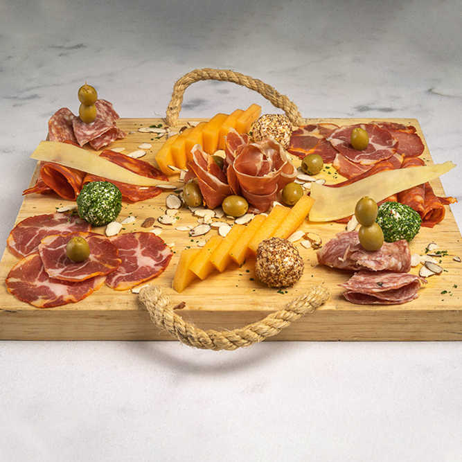 Tabla de embutidos finamente rebanados.